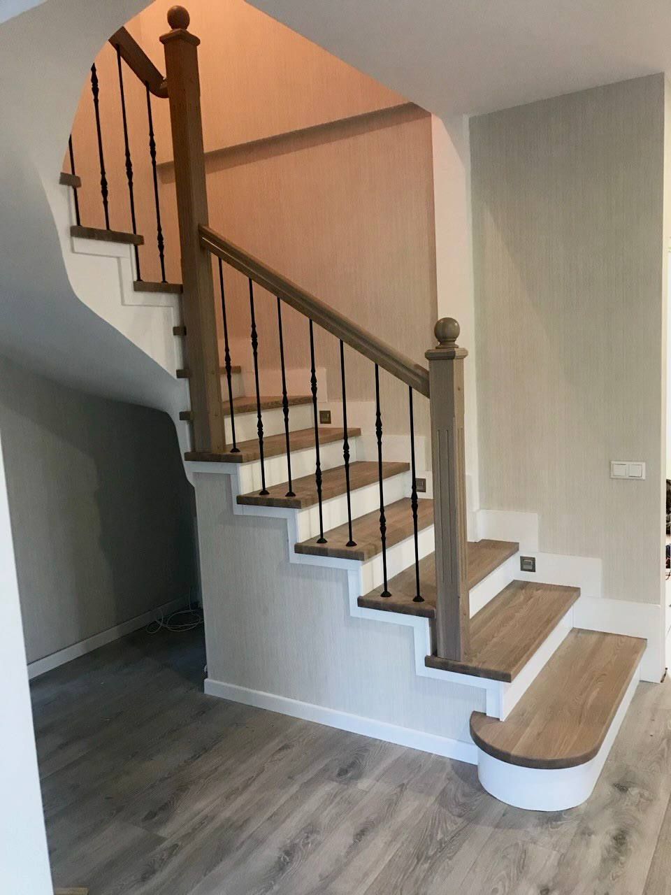 Отделка бетонной лестницы ясенем